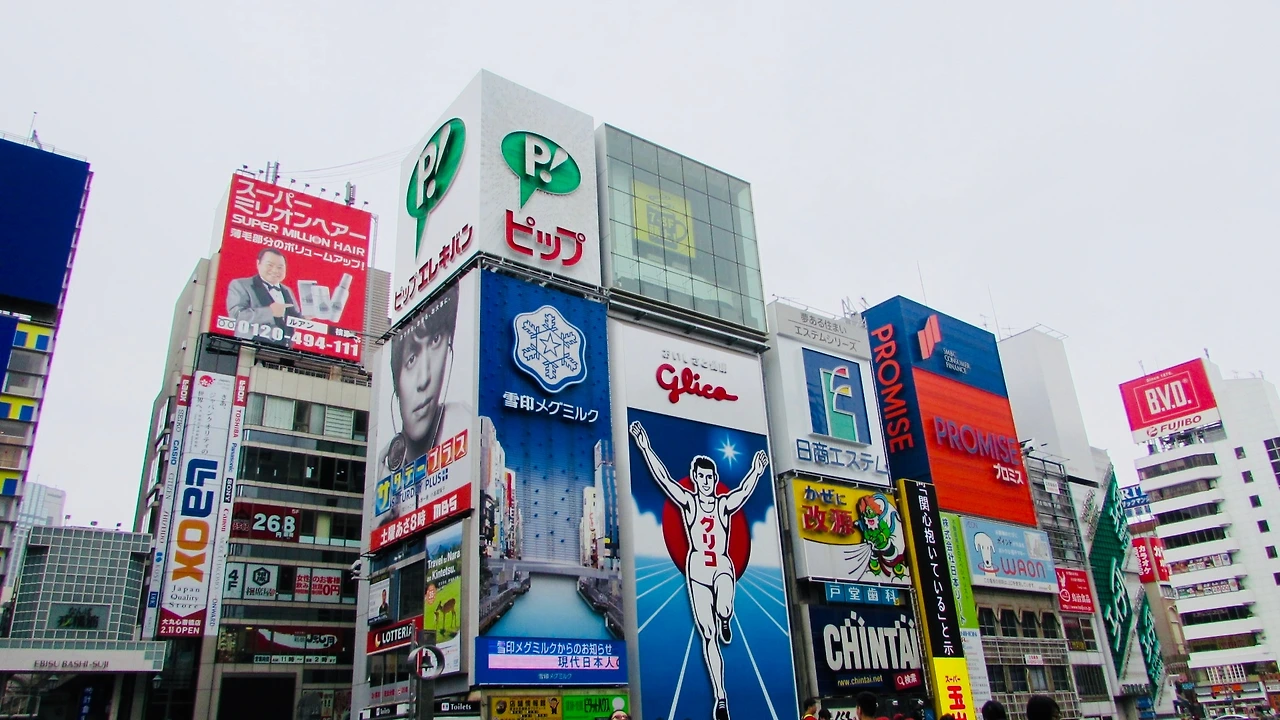 그곳이 처음에는 도톤보리인지 알지 못했다. 웬 작은 다리 위에서 사람들이 옹기종기 모여 쉴 새 없이 사진을 찍고 있는 것이 아닌가. 무심하게 지나가려 했는데 건물 벽면을 가득 채운 '쿠리코 런너'의 모습을 보고 이곳이 도톤보리임을 알았다.