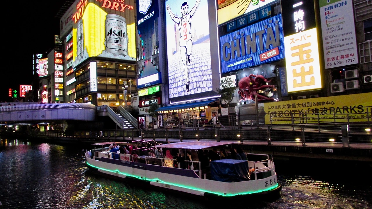 육중한 돌다리 아래로 내려서자 도톤보리 주변의 광고판이 한눈에 들어왔고 내륙으로 깊숙이 들어온 강 물결은 네온사인 불빛을 받고 오채 색으로 출렁거렸다.