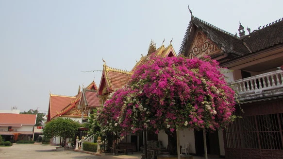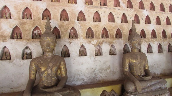 그늘은 거의 없다. 간혹 높은 나무 그늘이 오아시스와 같다. 자전거에서 내려 엉거주춤한 상태에서 휴식을 취한다. 대통령궁 앞 왓 씨싸껫이 있다. 1818년 짜오 아누웡 시절에 건설된 사원이며 비엔티안에서 현존하는 가장 오래된 사원이다. 나는 입장권을 구입하고 나무 아래 자전거를 세웠다. 이름 모를 큰 나무가 사원 입구를 덮고 있다. 그리고 무명의 화가가 한 쪽 구석에서 불화를 그리고 있다.