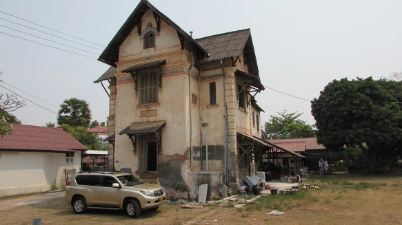 다시 왓씨싸켓 사원을 나와 자전거를 타고 달린다. 프랑스 대사관을 지나 마호쏫 병원을 지났다. 오른편으로 메콩강변이 보인다. 어떤 특별한 목적지도 없이 도로의 흐름에 따라 달려본다. 여행자 거리를 벗어나자 여행지의 모습이 아니라 라오스 인들의 실생활 모습이 드러난다. 빵집과 국숫집, 병원과 카페, 사원 등이 보인다. 사원 앞에는 불단에 올릴 공양물인 양초, 꽃, 바나나, 코코넛 등을 팔고 있다. 나는 자전거를 탄 채 시무앙 사원으로 들어가 보았다. 한 젊은 스님 앞에 많은 젊은 남녀들이 앉아 있다. 무엇을 하는지 정확히 알 수는 없지만 아마도 소원을 빌고 스님께서 이를 주관하는 듯했다. 그리고 프랑스 식민지 시절 지은 허물어져 버린 낡은 건물이 보인다.