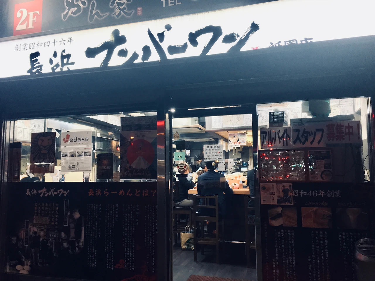 '나가하마 넘버원' 라멘집까지 걸어가면서 빨리 소화되기를 바랐다. 하지만 여전히 배는 부른 상태.