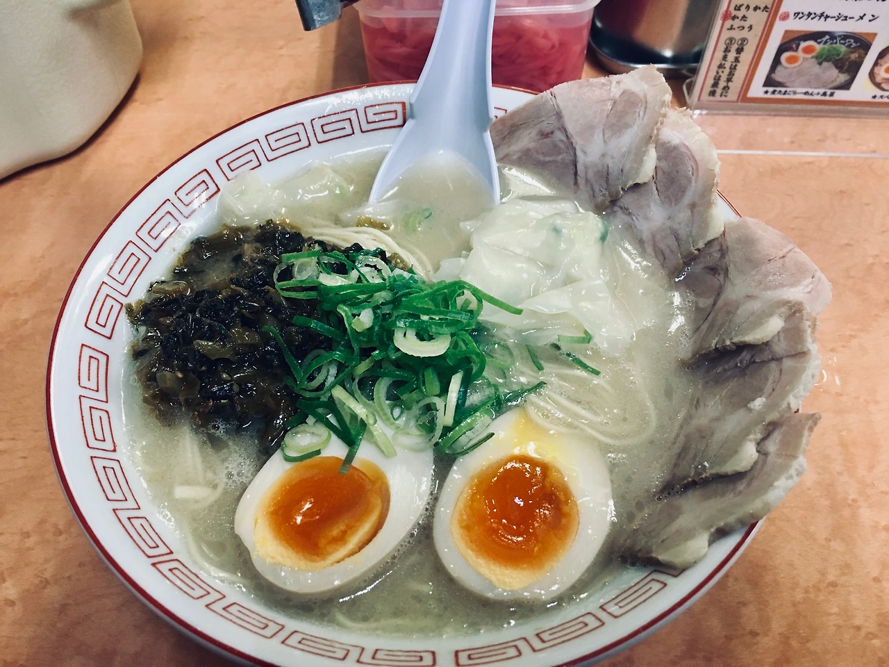 드디어 후쿠오카가 자랑하는 돈코츠 라멘이 나왔다.