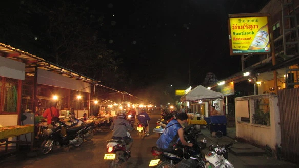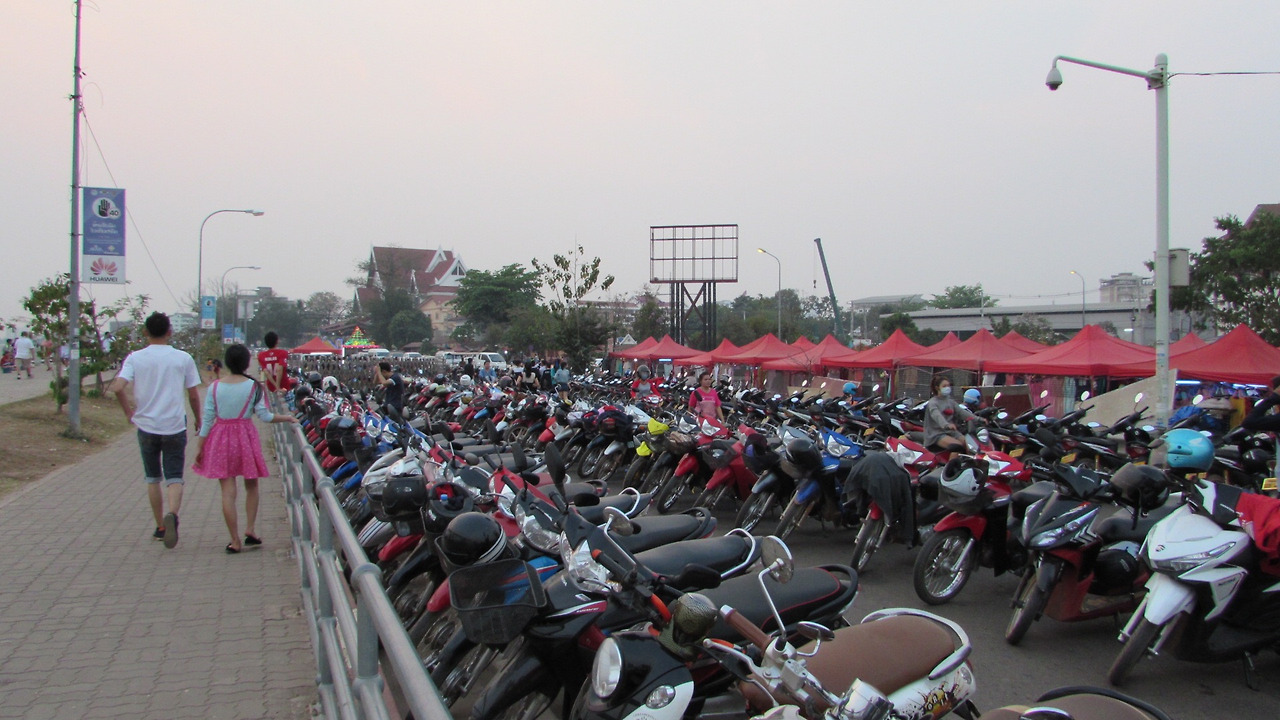 야시장 입구에서는 수백 대의 오토바이들이 질서 정연하게 주차돼 있고 쉴 새 없이 밀려 들어왔다. 왓 짠 사원 앞에는 갖가지 노천 음식점들이 즐비하다.