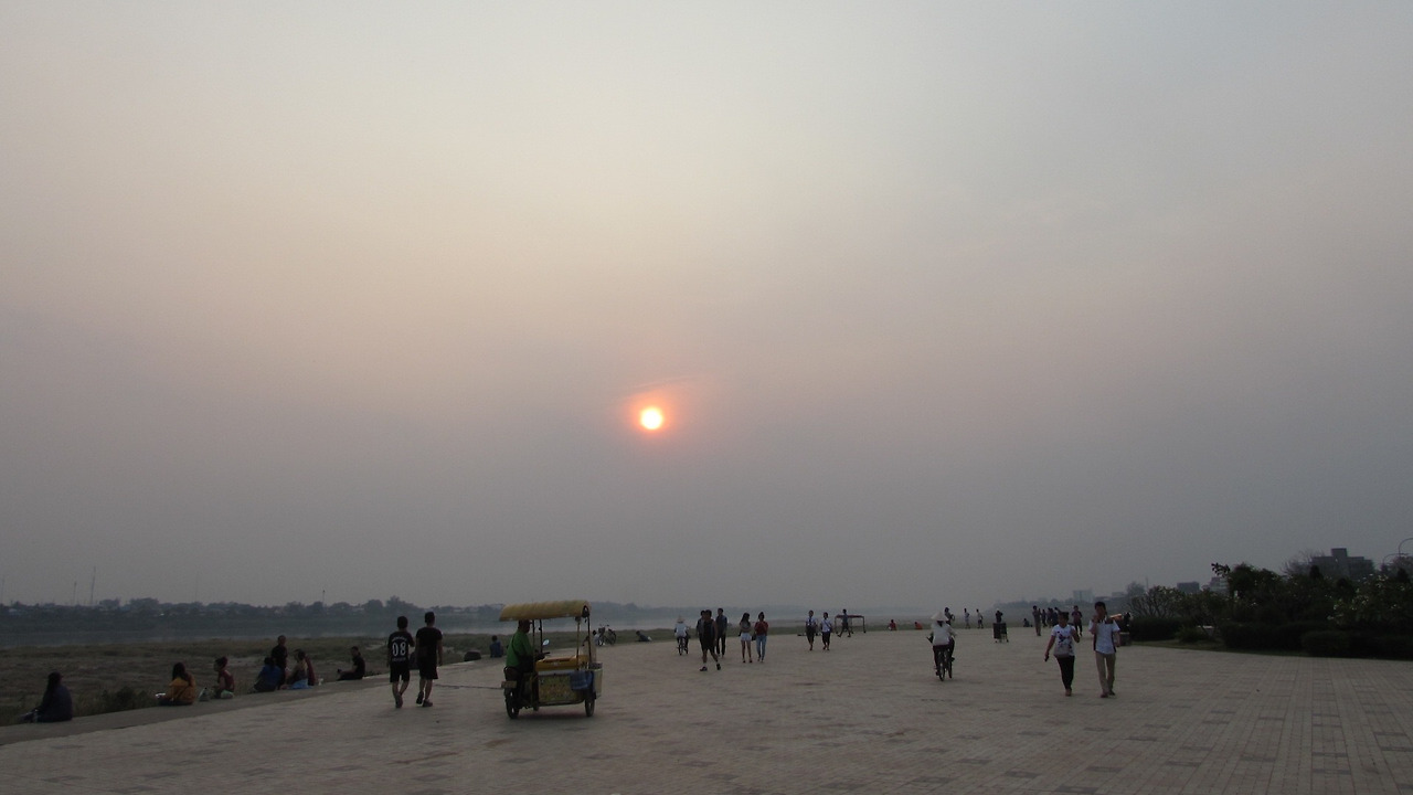 메콩 강은 물안개와 옅은 어둠이 어울려 조용한 시골 강변의 모습을 보여주고 있다. 저물어 가는 태양은 뚜렷한 붉은 원형을 유지하며 구름 속에서 곡예를 하고 있다. 나는 라오 맥주를 마시며 조용히 일몰을 구경했다. 아무런 인공 건물이 없는 자연 풍경 속에서 사라지는 태양은 아름답기 그지없었다.