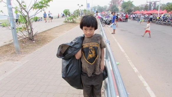 더벅머리와 맨발. 검은 비닐봉지를 어깨에 메고 넝마주이 마냥 여기저기 버려진 생수 병을 줍고 있다. 나는 사진 촬영을 부탁했지만 그 소년은 단 번에 거절했다.
