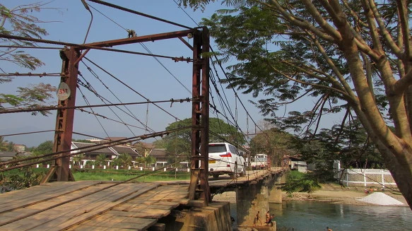 다시 호텔 밖으로 나와 자전거 대여점으로 갔다. 여권을 맡기고 산악자전거 대신 바구니가 있는 일반 자전거를 빌렸다. 어디로 갈 것인가. 탐 푸캄, 즉 블루 라군으로 가기로 했다. 쏭 강 다리를 찾아 나섰다. 많은 차량과 뚝뚝, 오토바이, 버기카를 타고 상판을 널빤지로 엮은 다리를 건너고 있다. 나처럼 자전거를 탄 여행자는 거의 없다.