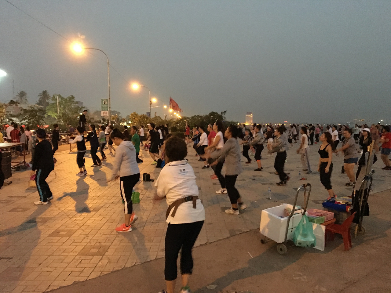 대략 두 개 정도의 에어로빅 팀이 신나게 춤을 추고 있었다. 나는 다시 야시장을 들러 기념품을 사고 길 가 주변의 노천 식당에 들러 야채 볶음밥을 시켰다. 역시 아주 천천히 밥을 볶아서 오이와 간장과 함께 내놓았다. 나는 천천히 먹으면서 라오스의 마지막 밤을 마음속에 담았다.