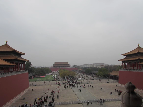 드넓은 박석들이 촘촘히 박혀있고 붉은 벽돌이 높고 단단하게 다섯 누각을 지탱하고 있다. 나는 오문에 올라 천안문과 태화문 방향을 바라보았다.