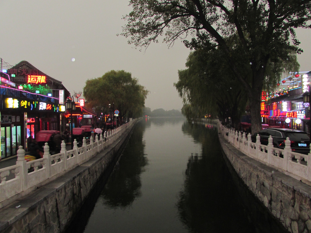 벽돌과 벽돌이 이어저 기다란 담장이 만들어지고 약간 꺼머틱틱한 지붕들이 몰려오는 어둠을 받아들이고 있다. 아직 푸른 잎사귀를 달고 북경의 가을을 장식하는 키 큰 나무들은 스치하이로 가는 길목마다 저녁 바람에 나부끼고 있다. 나는 특별한 목적지 없이 도로 주변의 오래된 가게들을 엿보며 천천히 걷기 시작했다. 이미 가게문 앞에는 둥글고 큰 홍등이 불을 밝히고 있고 실내의 형광등은 여러 잡화와 기념품들을 비추고 있었다. 딱히 구매욕은 들지 않고 유리창 안을 기웃거릴 뿐이다.
