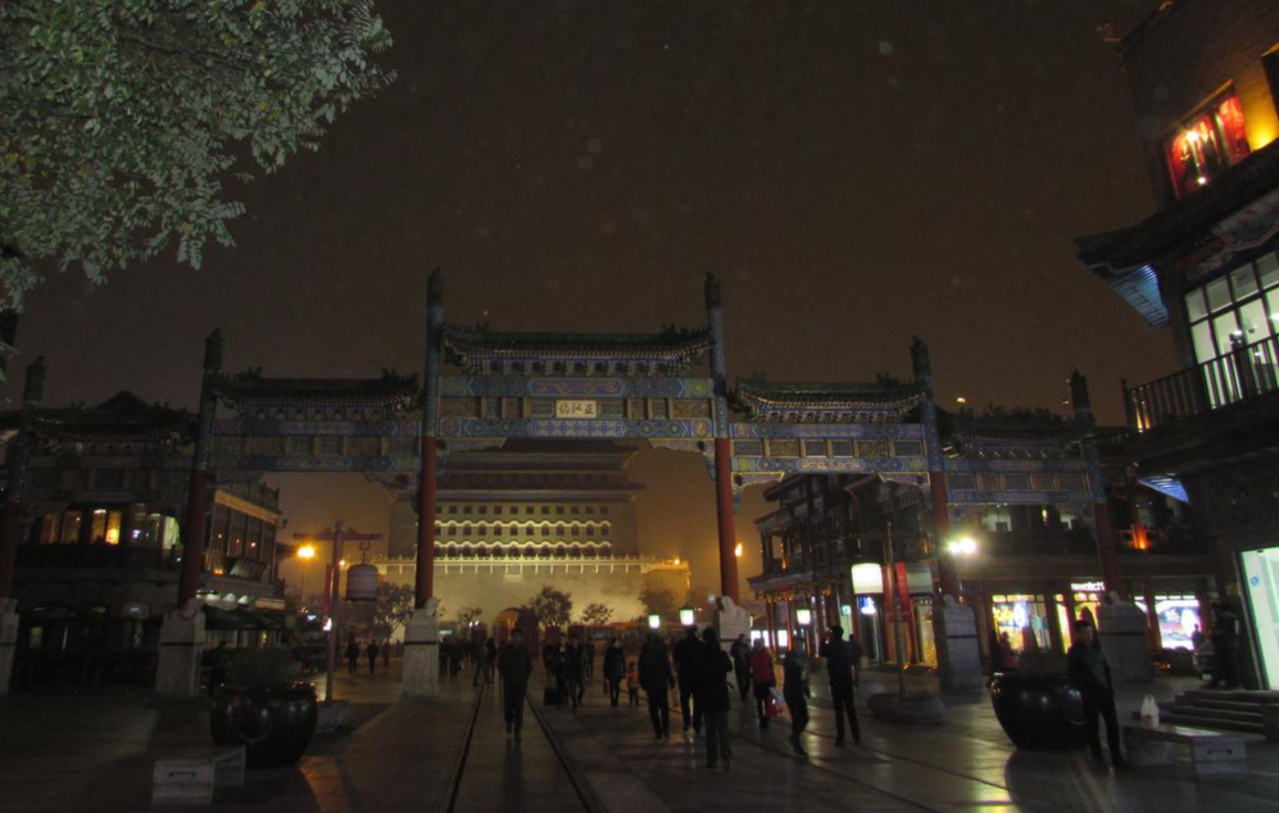 멀리 천안문 광장의 인민 대궁전 건물이 테두리 조명을 뽐내며 어둠 속에 웅크리고 있고 오른쪽으로 시선을 돌리자 정양문이 보인다. 나는 천천히 북경의 밤 속으로 들어갔다. 정양문 앞의 대로을 건너자 첸먼다제가 나타난다. 황제가 황궁 밖을 나설 때 공식적으로 사용한 어도라고 한다. 베이징 올림픽을 앞두고 대대적인 공사를 거쳐 현재의 모습을 갖추게 되었다.