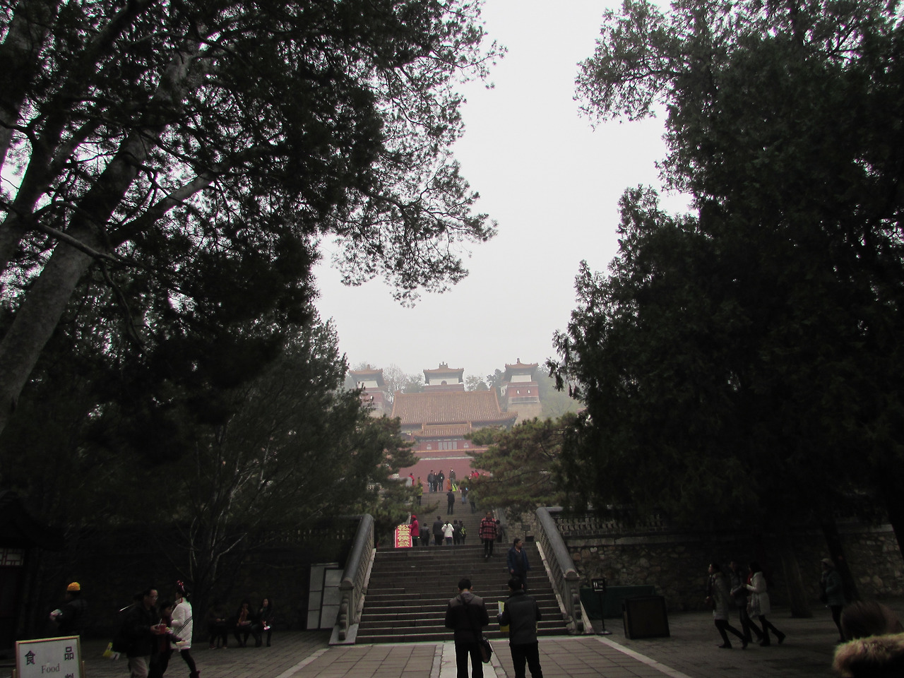오래된 나무들 사이로 가지런하게 깔린 박석을 밟고 올라서자 정면에 절벽과 같은 적색의 성곽이 우뚝 서 있고 그 위에 붉은색 기와지붕을 얹은 건물과 그 뒤편으로 라마사원이 수직을 이루며 서 있었다. 나는 경사를 이룬 좌우측 계단을 밟고 올라가자 북궁문 일대가 보였다.