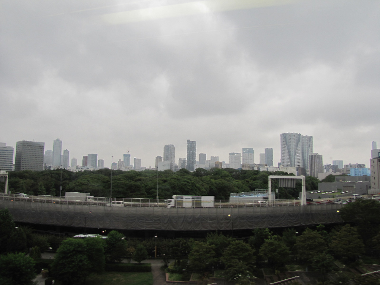 창 밖으로 멀리 동경의 고층빌딩이 보였다. 그 위로 안개 같은 먹구름이 잔잔히 흘러 다니고 있다.