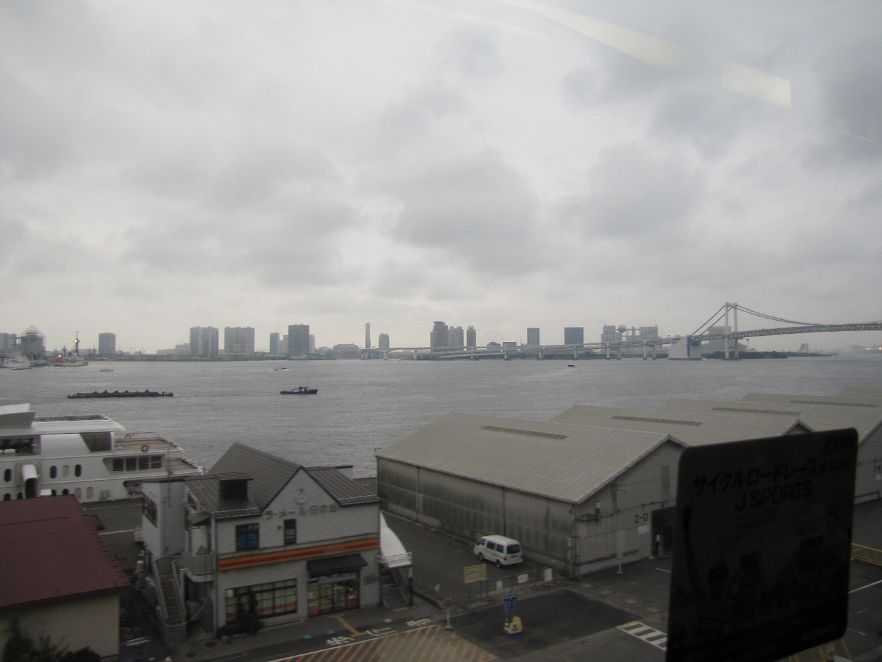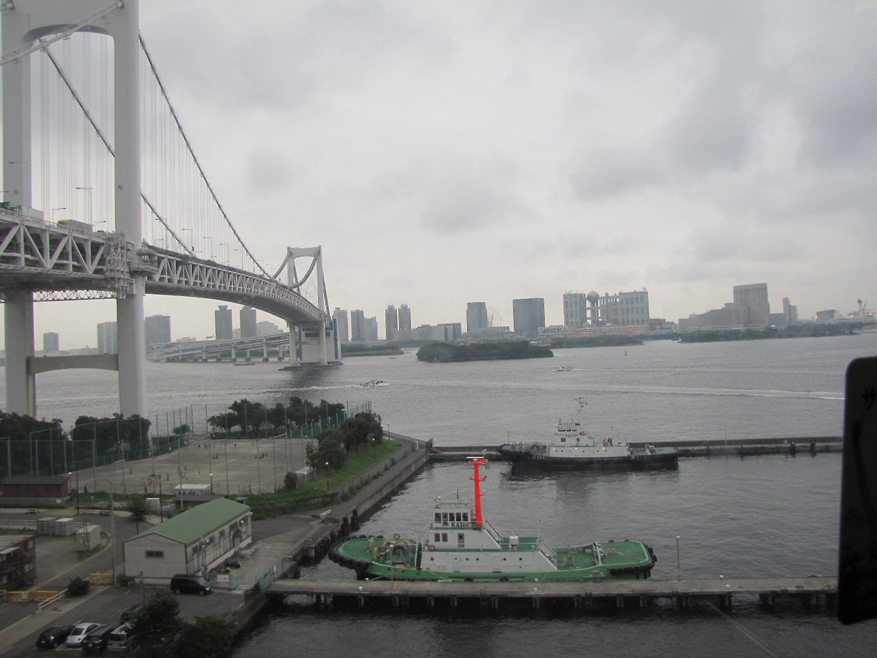 아. 이곳이 동경이구나라는 생각....모노레일은 동경만 주변을 달리다가 레인보우 브릿지를 넘어가면서 동경의 빌딩 숲과 하늘. 그리고 먹구름이 비친 바닷물을 보여 주었다.