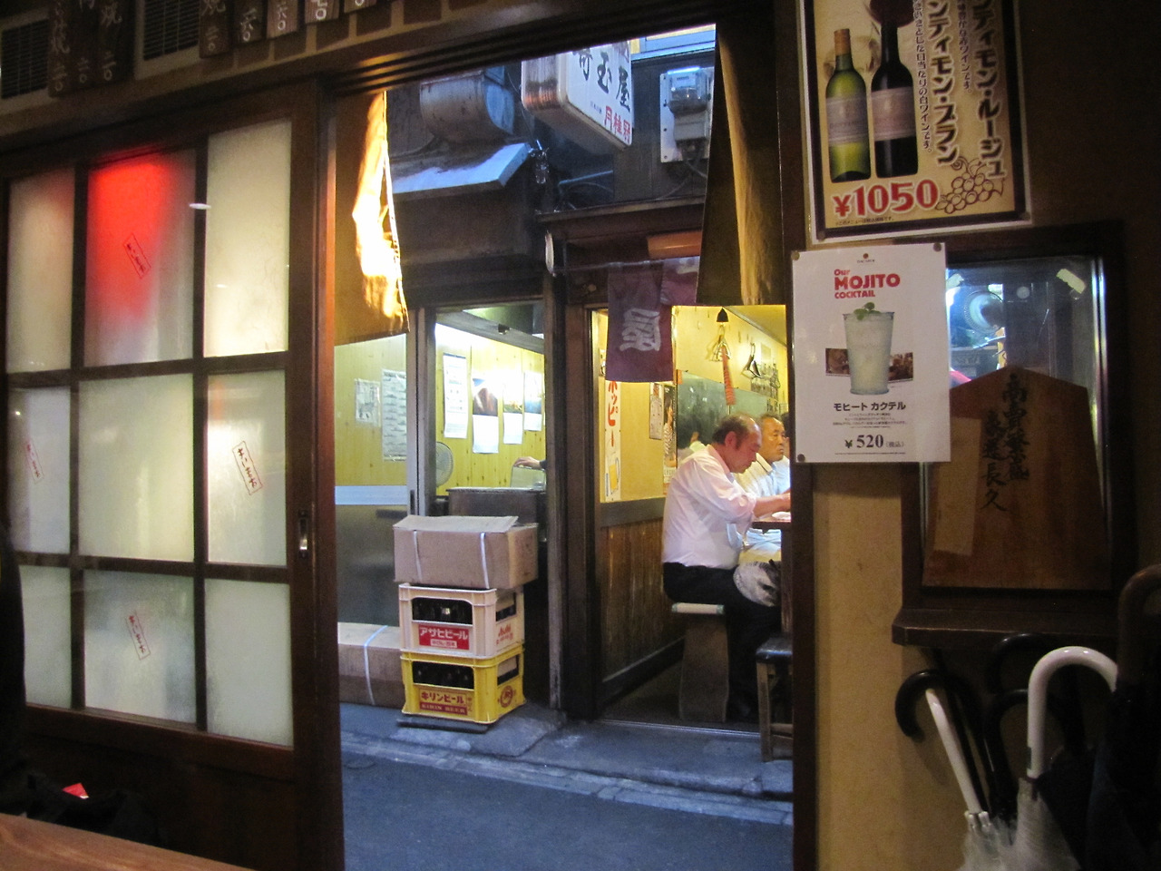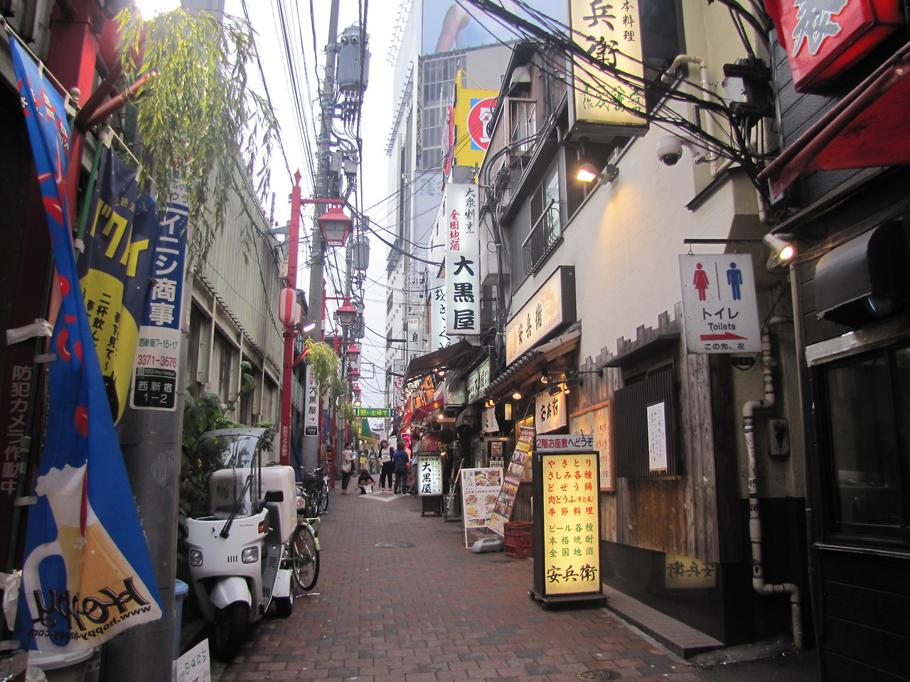 골목길을 따라 늘어선 가게들은 대부분 목조건물이었고 대략 10명 내외 정도 들어갈 만한 비좁은 내부를 갖고 있었다. 연기의 실제는 바로 꼬치구이였다. 이 골목 전체가 꼬치구이 집이었던 것이다.