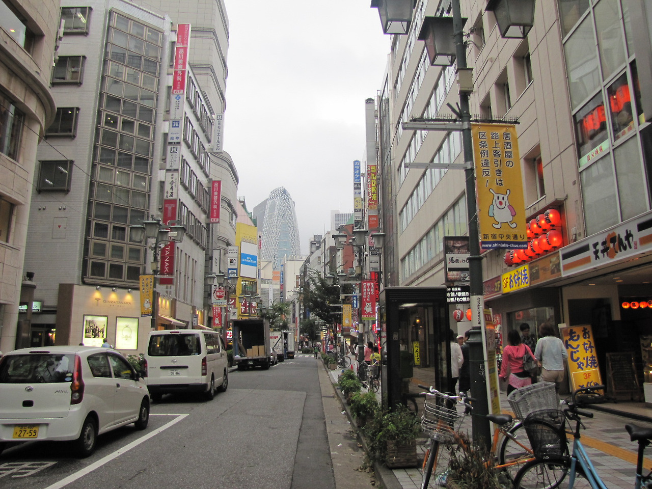 신주쿠 거리와 골목 사이를 누비며 질서 정연하게 진열된 쇼윈도 속 상품들을 눈요기하며 도쿄도청이 나오기를 기대했으나 막상 걷고 걸어도 쉽게 보이지 않았다. 오후의 시간은 계속 지나가고 나는 초조해졌다. 아직 롯폰기 여정은 남아 있다. 나는 돌고 돌아 다시 도쿄도청을 포기하고 신주쿠 역으로 되돌아왔다. 배가 여전히 고팠고 보슬비는 내리고 있다.
