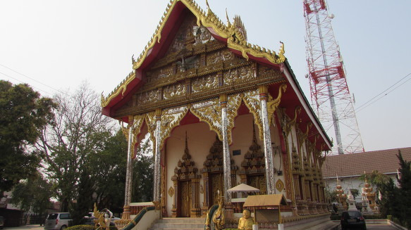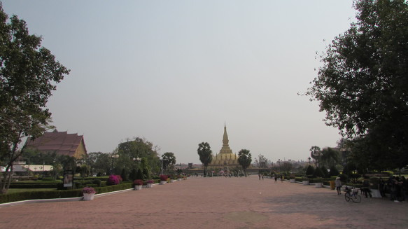 이글거리는 태양 광선이 지친 어깨에 내리 꽂힌다. 얼굴은 벌써 타는 듯하다. 선 크림은 바르지도 못했다. 벌써 지쳐간다. 시원한 라오 맥주가 간절하다. 정문 앞에 서자 황금빛 투구 모양의 불탑이 우뚝 서있다. 부처님의 가슴뼈와 머리카락이 있다고 전하는 사원이다.