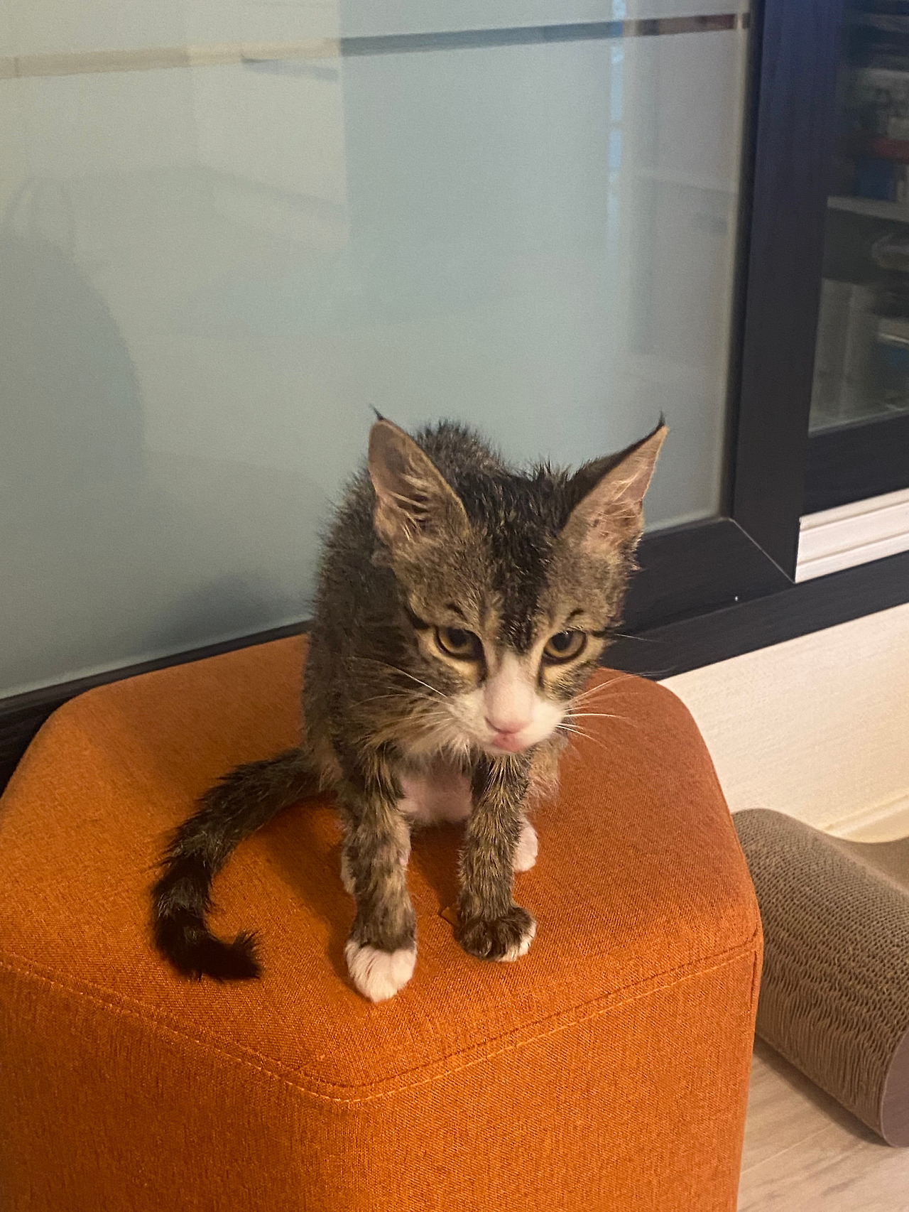깨끗하게 씻었다는 생각보단 몸이 더럽혀졌다 생각했는지 그 작은 몸뚱이를 몇 분간 그루밍해댔다.