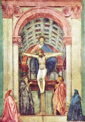 이 작품이 바로 서양미술 최초로 '원근법'을 제대로 구현한 작품이다. 마사초는 23세 무렵 피렌체에 와서 새로운 미술에 눈을 뜨게 된다. 그를 원근법의 세계로 이끈 사람은 브루넬레스키라는 건축가였다.