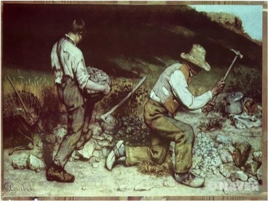 당시 소외되고 처참한 사람들 즉 <레미제라블>의 주인공이 될만한 사람들을 그렸다. 비록 그들이 아름답지 않고 예술을 향유할 수 있는 계층이 아님에도 역사상 처음으로 평범한 사람을 넘어 빈민계층까지 주인공으로 말이다. 쿠르베를 비롯한 사실주의자들은 모든 인간이 “평등”하다는 꿈을 캔버스에 몸소 실천했다.