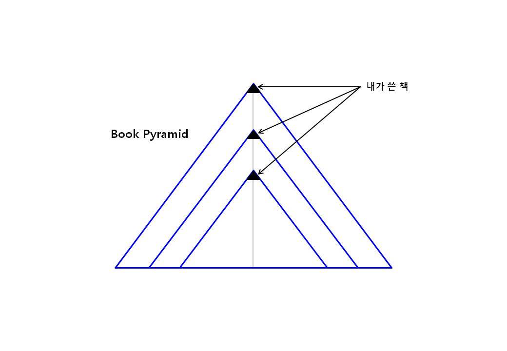 나만의 Book Pyramid의 높이를 높게 하는 방법은 매우 단순하다. 굳이 물리학적으로 생각하지 않더라도 더 넓은 바닥을 가질 수 있다면 더 높은 피라미드를 쌓아 올릴 수 있다. 내가 읽는 책의 장르가 더 다양해질수록, 그리고 읽고 있는 책의 깊이가 더 깊어질수록 더 큰 피라미드의 바닥 면을 갖게 되는 것이다. 그리고 그렇게 피라미드를 쌓아 올리는 중간에 반드시 내 이름으로 된 책을 넣어야 한다. 그것은 대나무의 마디가 되어 절대 쓰러지지 않게 해주는 튼튼한 주춧돌이 된다. 내 이름으로 된 책이 피라미드의 한가운데 자리 잡았을 때가 되어야 그것은 온전히 내 이름으로 된 피라미드가 된다. 그리고 그제야 사람들은 비로소 내가 피라미드를 만들었다는 것을 알게 되는 것이다.