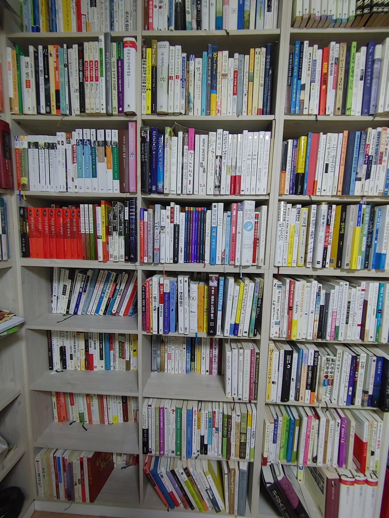 처음에는 엄청난 '오버'가 아닌가 생각했었다. 막상 기존에 가지고 있던 책을 다 채워보니 엄청난 빈 곳을 마주했기 때문이다. 지금은 어떨까? 약 3년 만에 책장을 거의 다 채우게 되었다. 물론 당연한 말이지만, 내가 직접 사서 읽은 책들로 채워졌다는 뜻이다. 대략 권 수를 세어봐도 5천 권은 넘을 듯하다. 나는 이 방을 서재이자 나만의 도서관이라고 부른다. 지금은 나 혼자만의 공간이고 책방이지만 언젠가는 이 책들이 도서관으로 성장할 것을 믿고 있기 때문이다. 내가 쓴 책 《버킷리스트(공저)》에서도 언급했지만 내 평생의 버킷리스트 중 하나가 바로 내 이름을 딴 '도서관'을 갖는 것이다. 그것은 단순히 소유 차원의 꿈이 아니라 '공유'와 '나눔' 그리고 '베풂'의 의미도 있다. 책을 갖고 싶어도, 책을 사고 싶어도, 책을 보고 싶어도 하지 못했던 내 어릴 적 기억 속의 소년을 위해서다. 시대가 바뀌고 세월이 흘렀다고 해서 나와 같은 소년이 없는 것은 아니다. 어쩌면 지금 시대에 더 많아졌을지도 모른다. 나는 그런 생각을 하면서 지금 내 방, 책방, 서재를 가리켜 도서관이라고 부르는 것이다.
