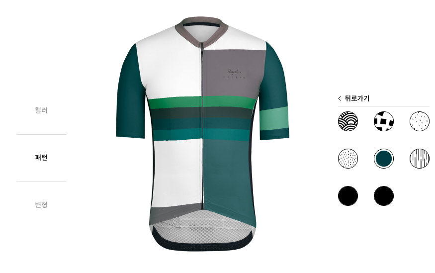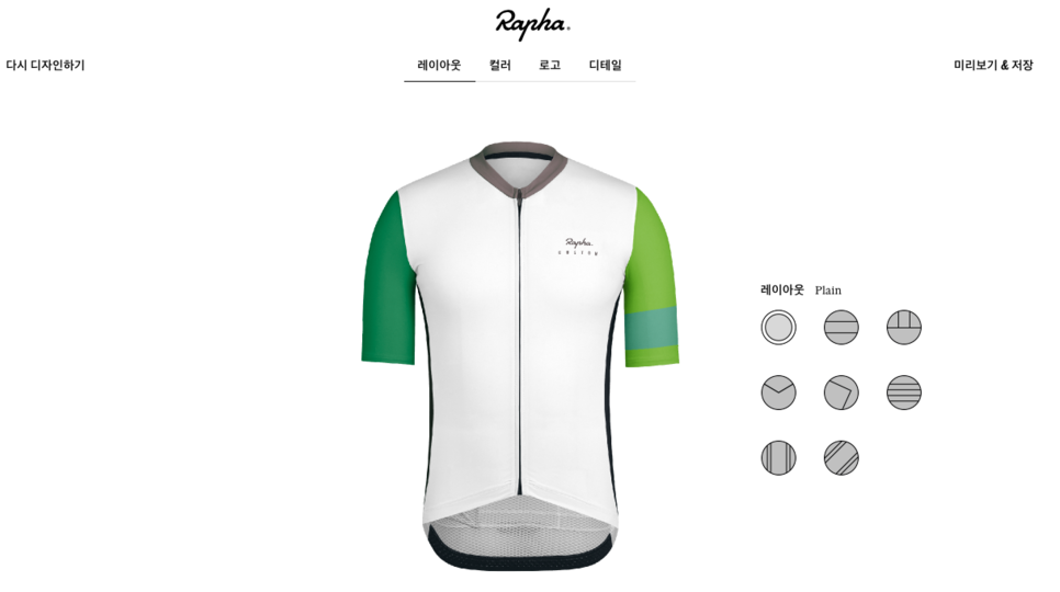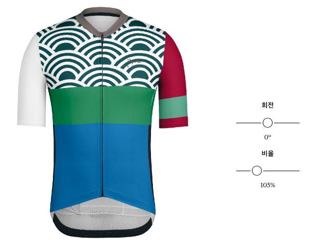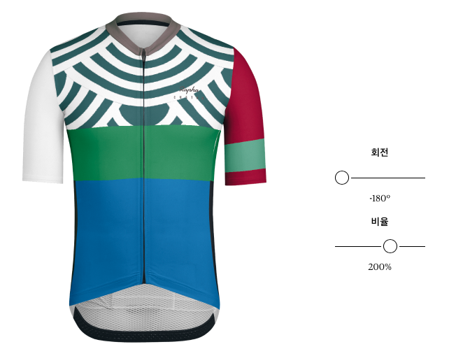 같은 디자인, 색상, 패턴을 적용하더라도 패턴의 비율과 회전을 통해 얼마든지 다른 저지를 만들 수 있도록 되어 있습니다. 그뿐만 아니라 기본 색상 이외에 색상을 추가하여 제작이 가능하기 때문에 디자인 영역은 너무나 넓다는 거죠. 놀라운 것은 이 모든 것을 라파 홈페이지에서 제공하는 툴을 통해 누구나 디자인을 할 수 있다는 것입니다.