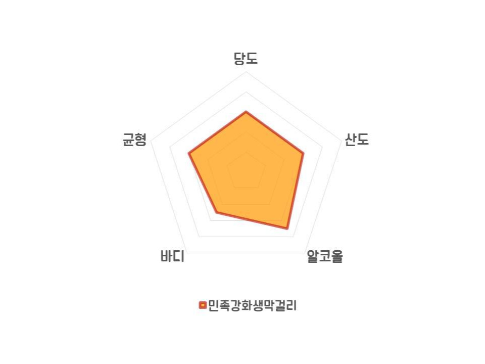 우선 첫맛은 탄산 함량이 적어 목 넘김이 부드러우며, 바나나향의 단향과 신맛이 잘 어우러져 있습니다. 전반적으로 깔끔하고 가볍게 잘 넘어가는 술이고 잘 만든, 맛있는 막걸리입니다. 지금도 충분히 맛있는 막걸리지만, 민족의 가치를 가장 먼저 내세운 술인 만큼 대중적인 단맛보다 고유의 단맛에 집중했으면 좋았을거란 아쉬움이 남네요.