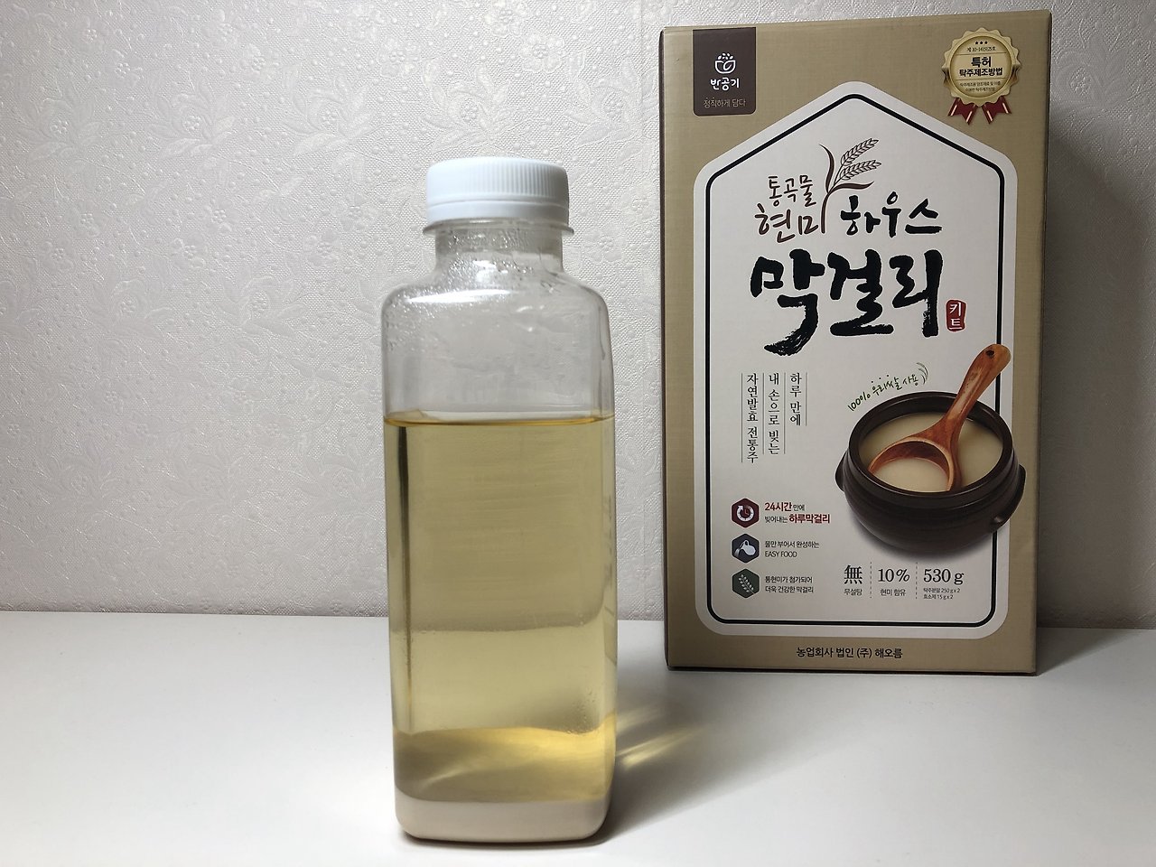 하루가 지나 보관하기 편하게 플라스틱 병에 옮겨 담고, 냉장고에서 차게 보관했다가 마셔보기로 했다. 처음 병입 했을 때는 제법 막걸리구나 싶었는데, 부유물이 다 가라앉고 나니까 ‘응?’ 싶다. 부유물이 적은 것으로만 봐도 알 수 있다시피 굉장히 묽은 농도이며, 점도는 전혀 없고 일반 물의 흐르기와 같다. 일반적인 막걸리의 향이 아닌 달달한 미숫가루의 향을 풍기며 입 안에서는 적당의 곡물의 구수한 맛과 함께 단 맛이 느껴진다. 여름에 더울 때 시원하게 얼음 동동 띄워 마신다면 크게 나쁘지는 않을 맛이다. 하지만 일반적으로 접해온 질감과 산미가 어우러진 균형적인 맛의 막걸리를 원한다면 그다지 추천할 맛은 아니다. DIY 막걸리에서는 산미를 하나도 느껴볼 수 없기 때문이다.