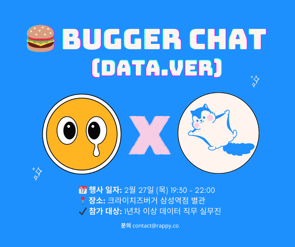 맛있는 버거와 함께, 데이터 직무 동료들과 서로의 고민과 경험을 나누는 자리로 깊이 있는 대화를 나누어요!