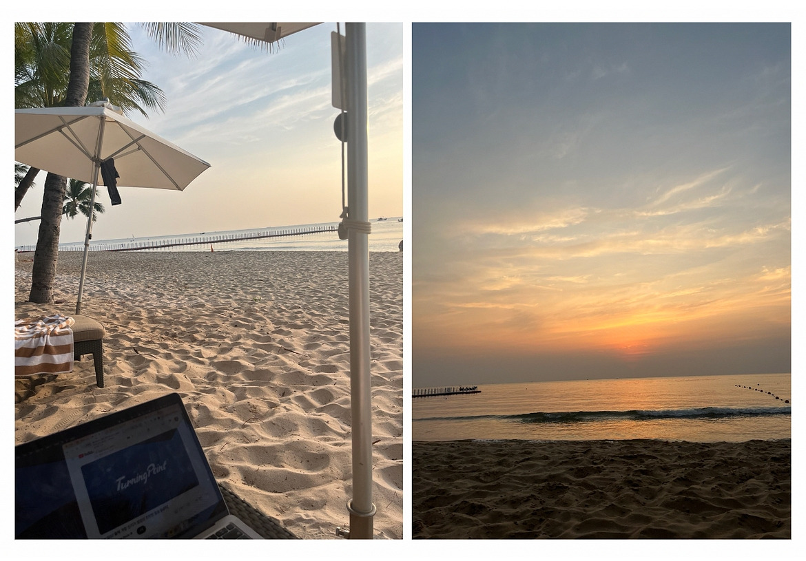 중간에 번아웃이 왔을때 혼자 해외 휴양지로 여행을 주로 가곤 했습니다. 조용하고 한적한 리조트에 머물면서 프라이빗 비치에서 일몰을 보면서 일을 했습니다. 여행을 하면서 책도 읽고 노트북과 함께 워케이션을 했습니다.