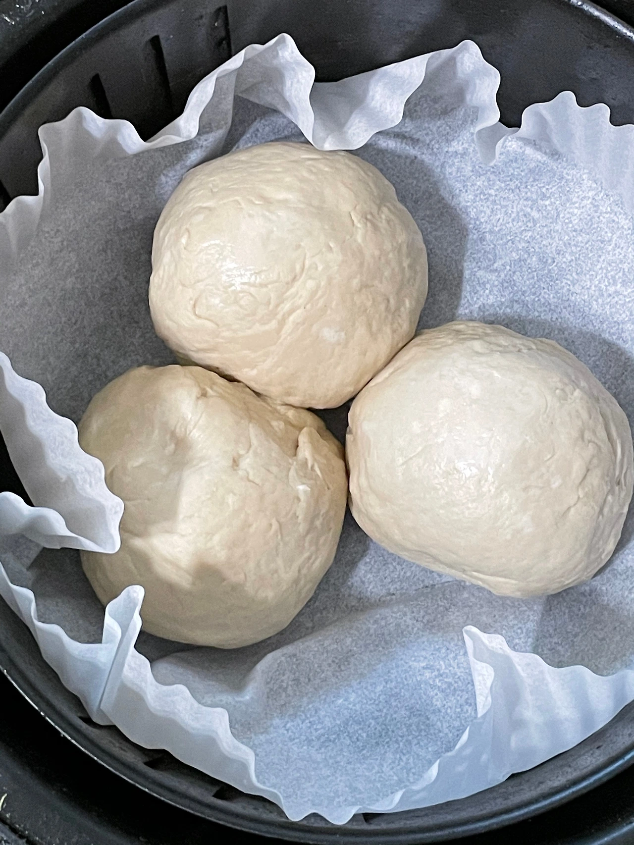 몇 분 지나 열어보니 일단 크기는 비슷하다. 발효 상태를 보려고 찔러보니