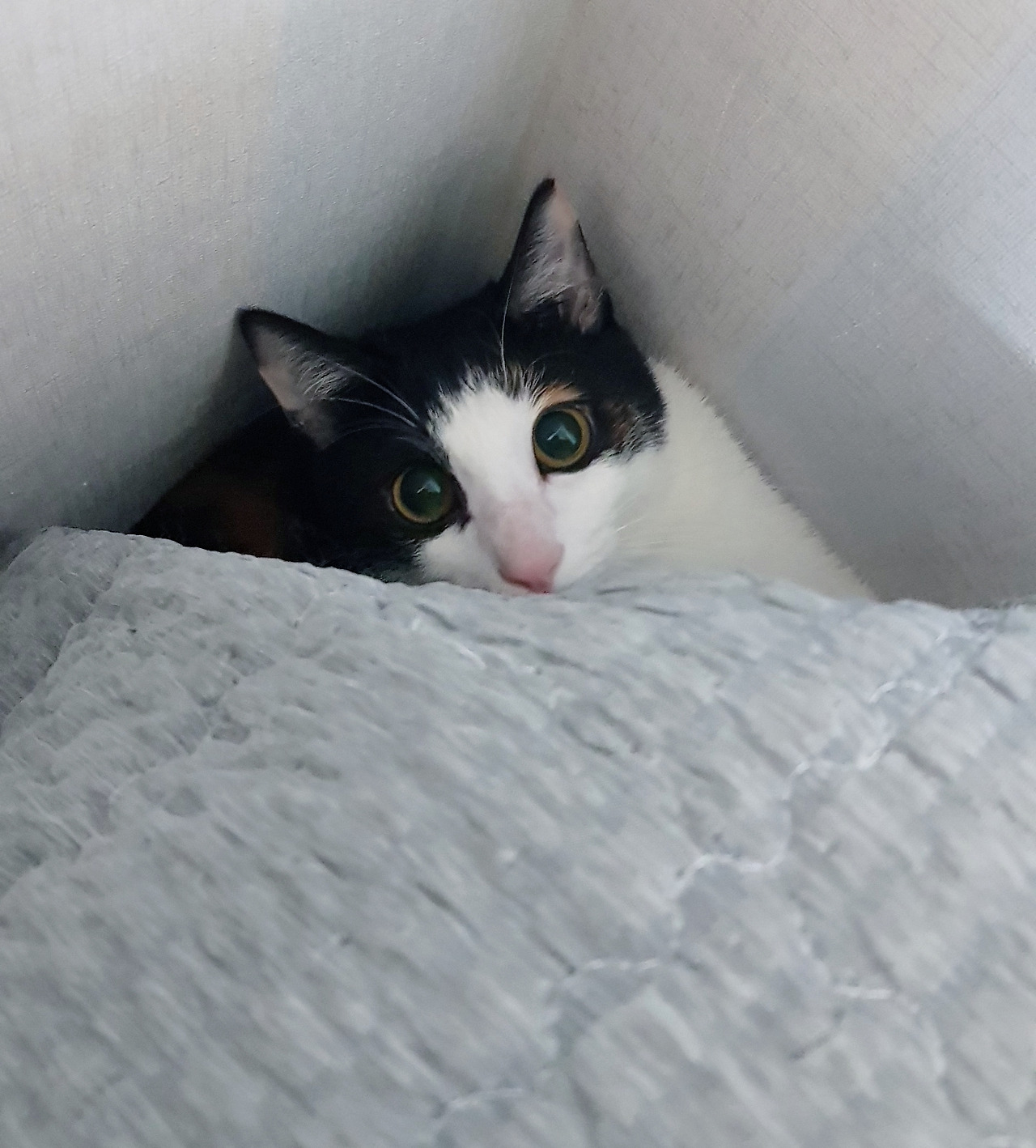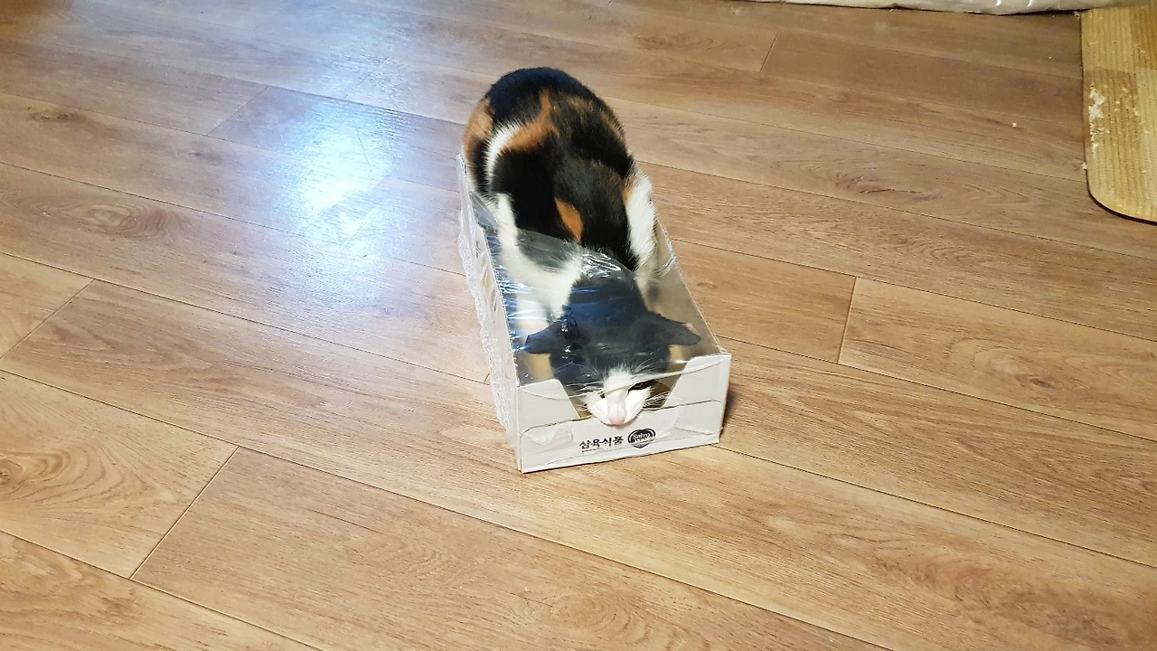 고양이 포도가 숨바꼭질 놀이를 한다.