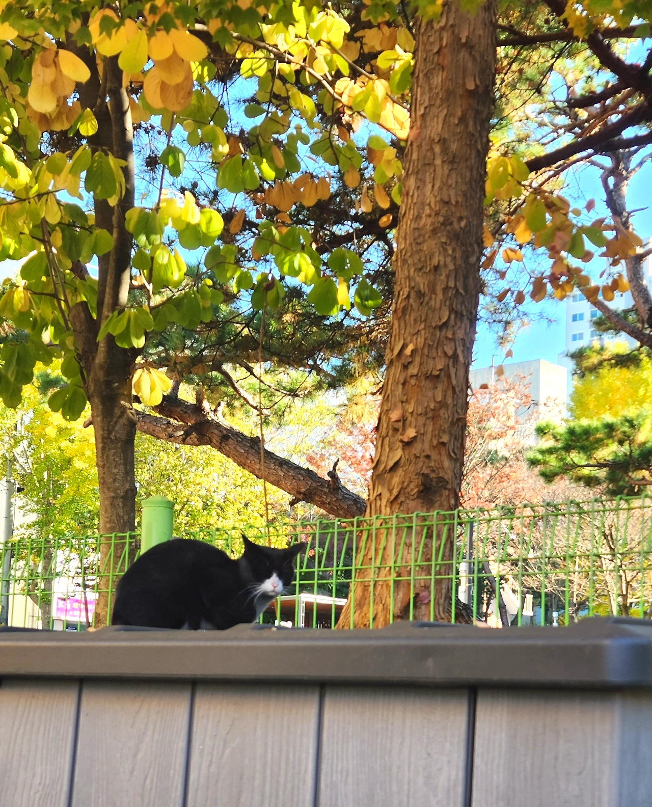 여유롭게 자신의 자리를 지키고 앉아 있다.