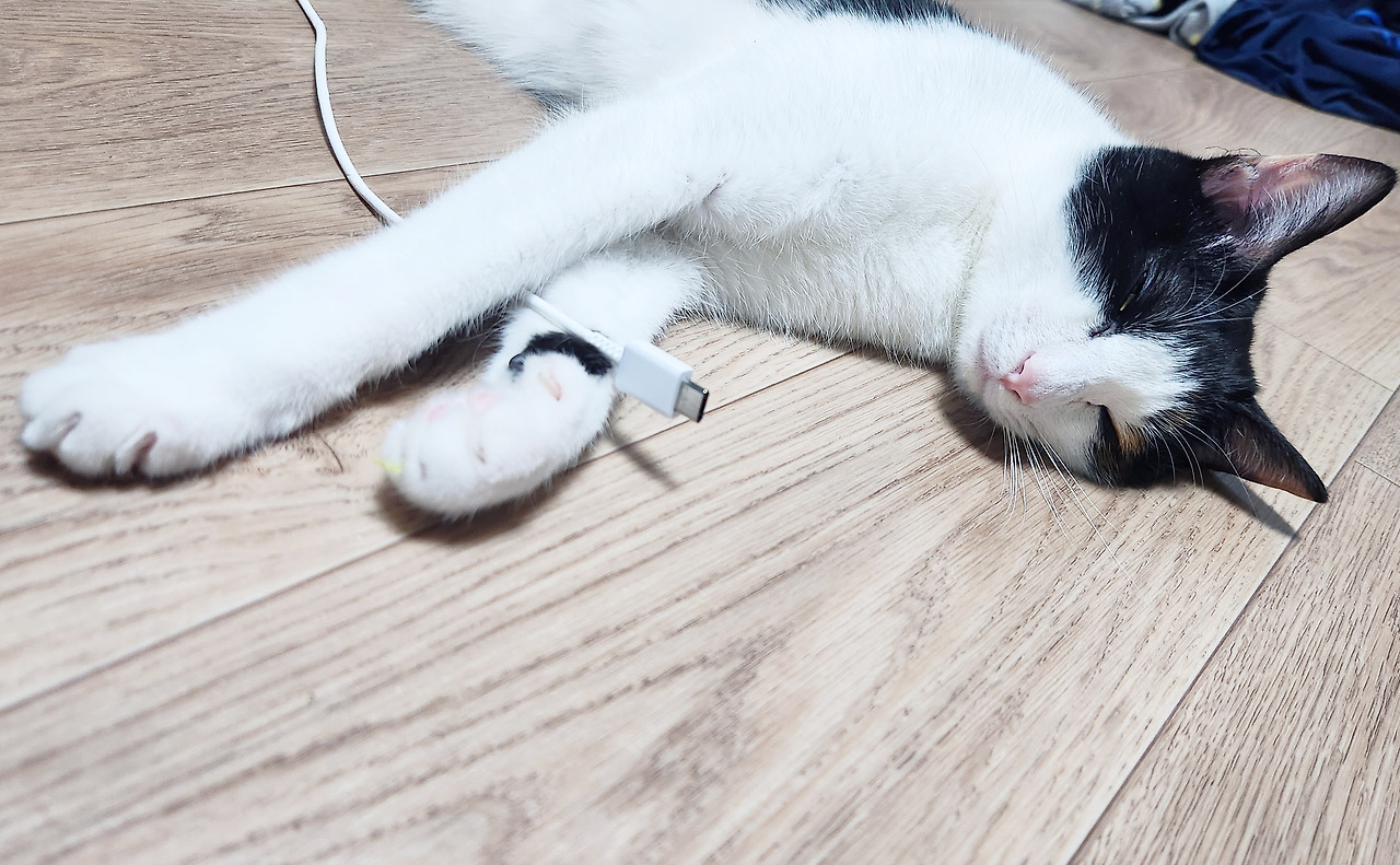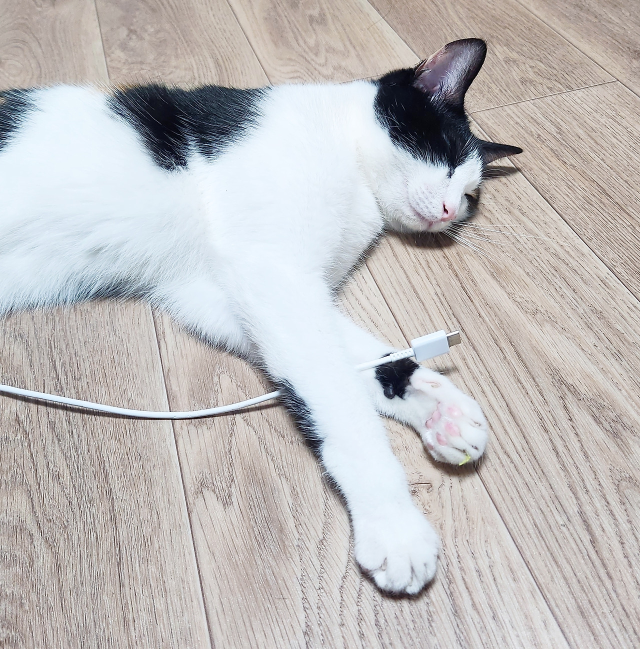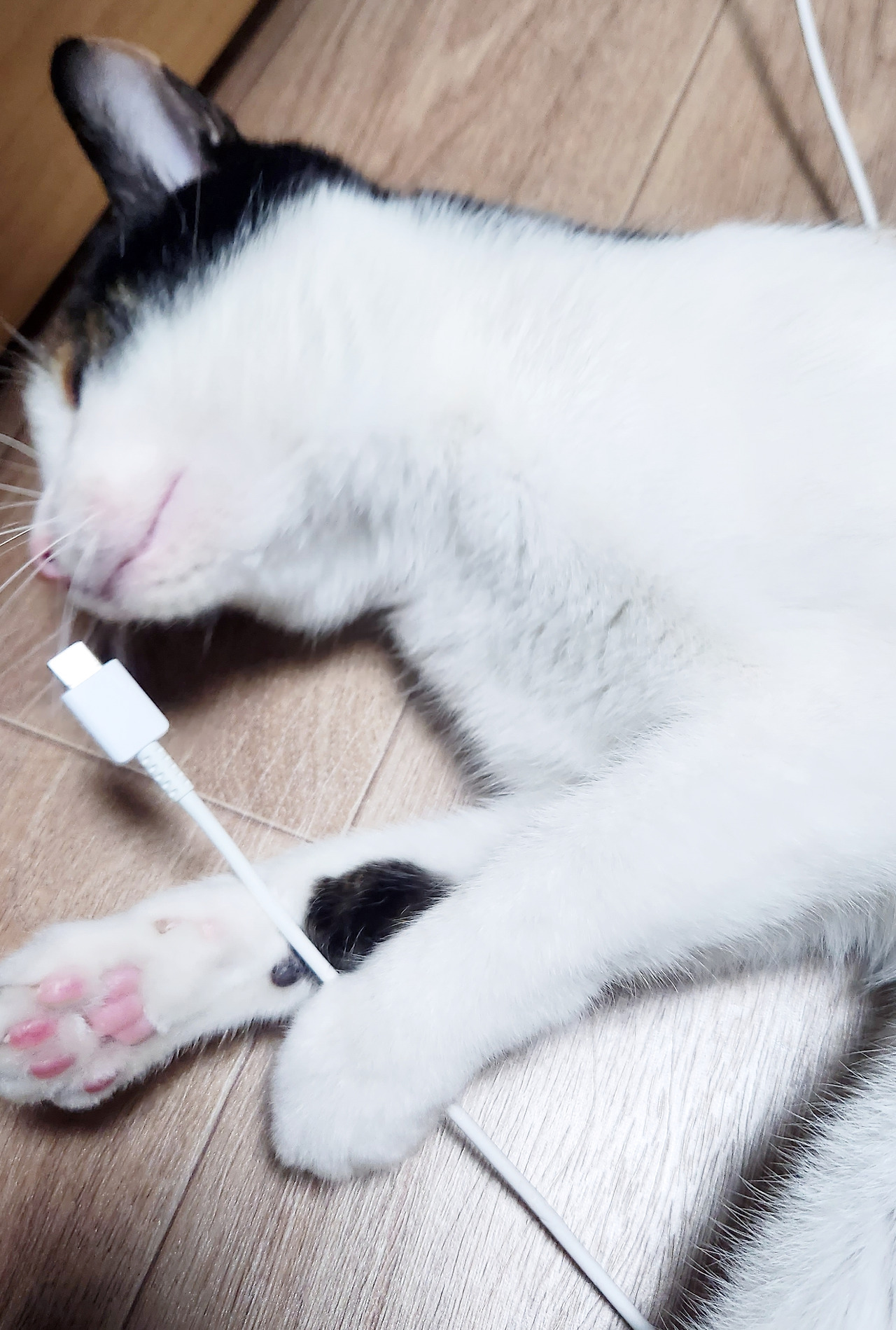 (충전기 줄을 진심으로 사랑하는 포도, 이러고 자고 있길래 몰래 찍었어요^^)
