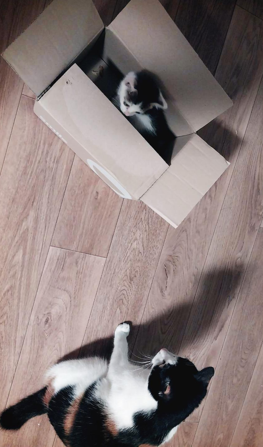 에효.....눈치없는 아가냥이 포도 누나가 좋아하는 상자에 들어가 있다 " 너 안 나올래?"