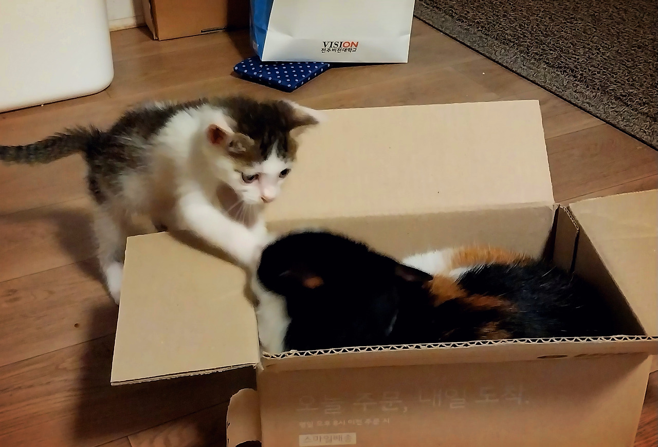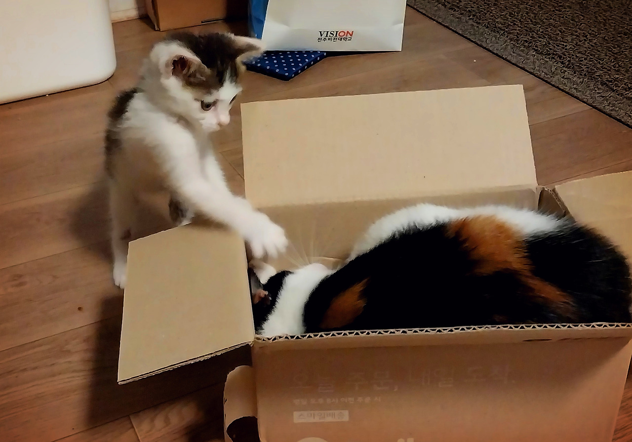 치미가 방에 들어가자 드뎌 박스를 차지 했다.