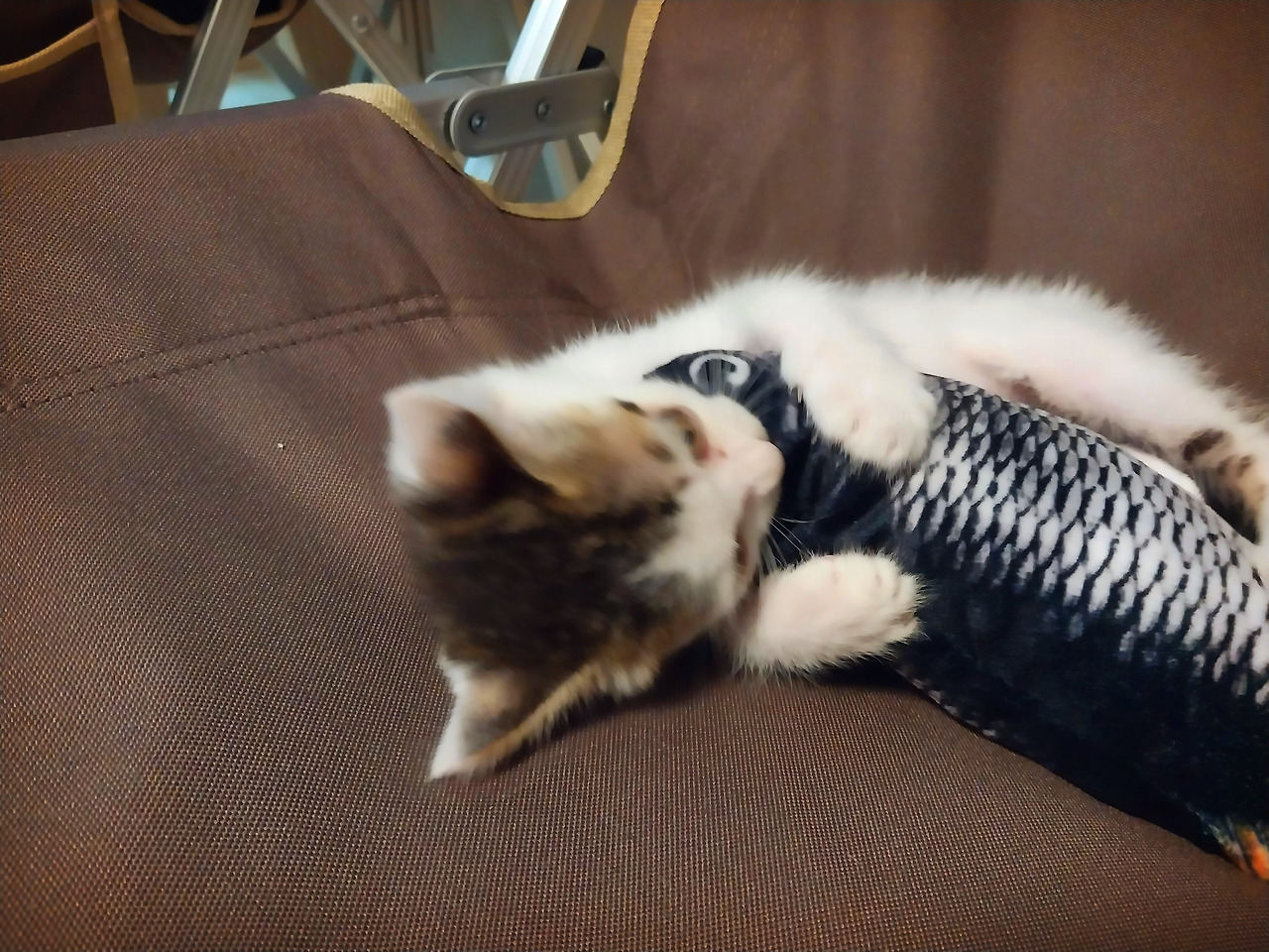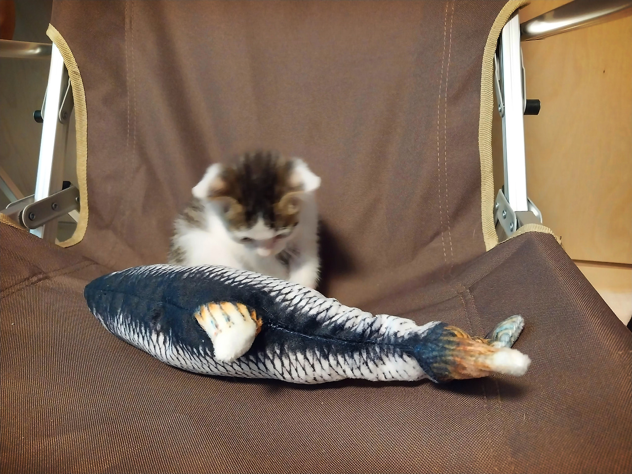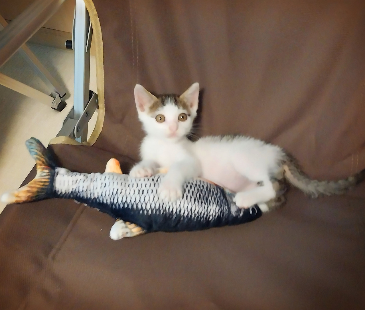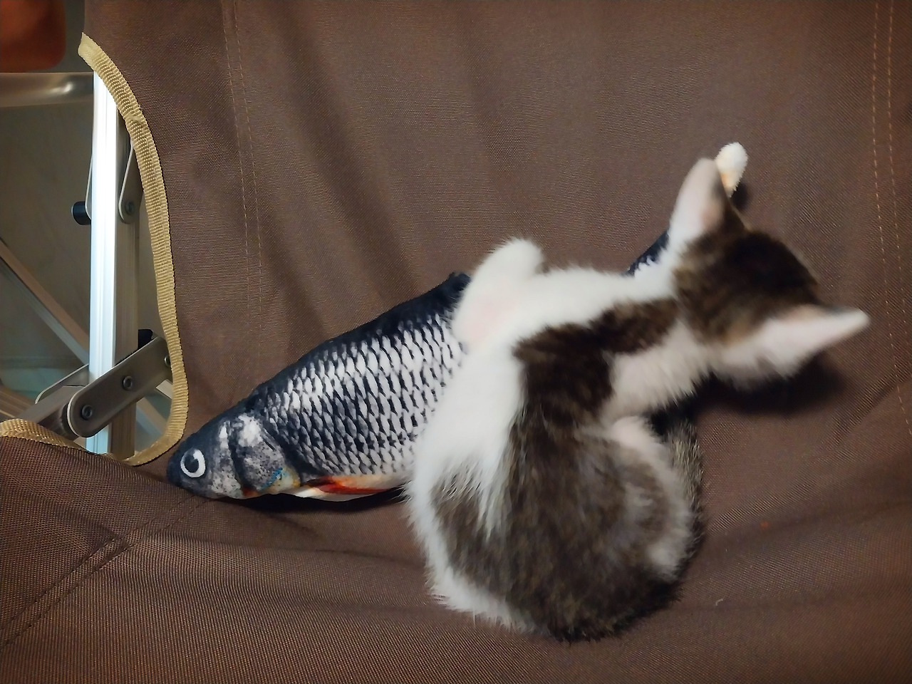 자기보다 큰 물고기 인형을 좋아하는 아기냥 동치미