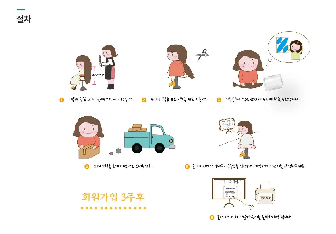 머리카락을 기부하는 절차 <출처: 어머나 운동본부>