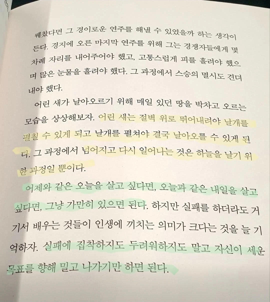 어제와 같은 오늘을 살고 싶다면, 오늘과 같은 내일을 살고 싶다면, 그냥 가만히 있으면 된다. 하지만 실패를 하더라도 거기서 배우는 것들이 인생에 끼치는 의미가 크다는 것을 늘 기억하자.- '무조건 시작하라' 중에서 -