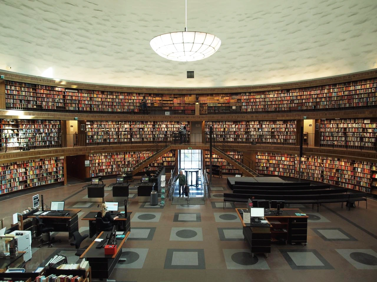 도서관 출입문을 밀고 들어섰다. 어마어마한 높이의 직사각형 통로가 입구의 분위기를 압도했다. 행여 발소리가 날까 조심해가며 서가로 이어지는 반들반들한 돌계단을 한걸음 한걸음 올라갔다. 새로운 세계로 이어지는 듯한 통로를 지나 꼭대기에 올라서자 놀랄만한 광경이 펼쳐졌다. 투박하다 생각했던 원통형의 설계가 이렇게 아름다운 내부를 품고 있을 줄 몰랐다. 원통의 내벽을 둘러싸며 3개 층에 걸쳐 수많은 책들이 빼곡히 꽂혀 있었다. 설계자인 군나르 아스플룬드라는 사람은 천재임이 확실하다.