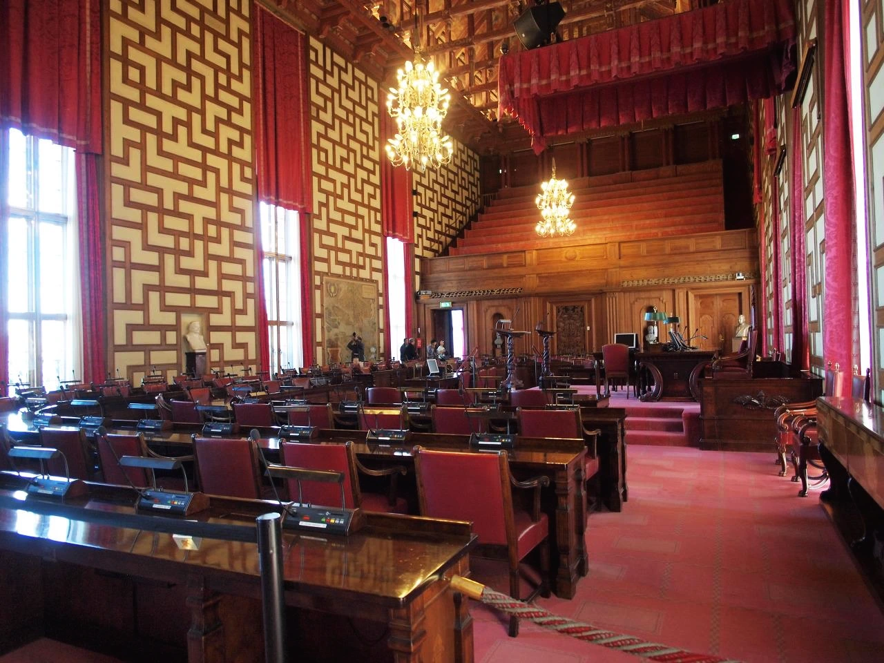 시의원은 101명이고 매 격주 월요일 저녁마다 바로 이곳에서 회의가 이루어진다. 회의장 위쪽 공간에 마련된 일반 방청석에는 약 200명 정도의 시민이 참석할 수 있다.