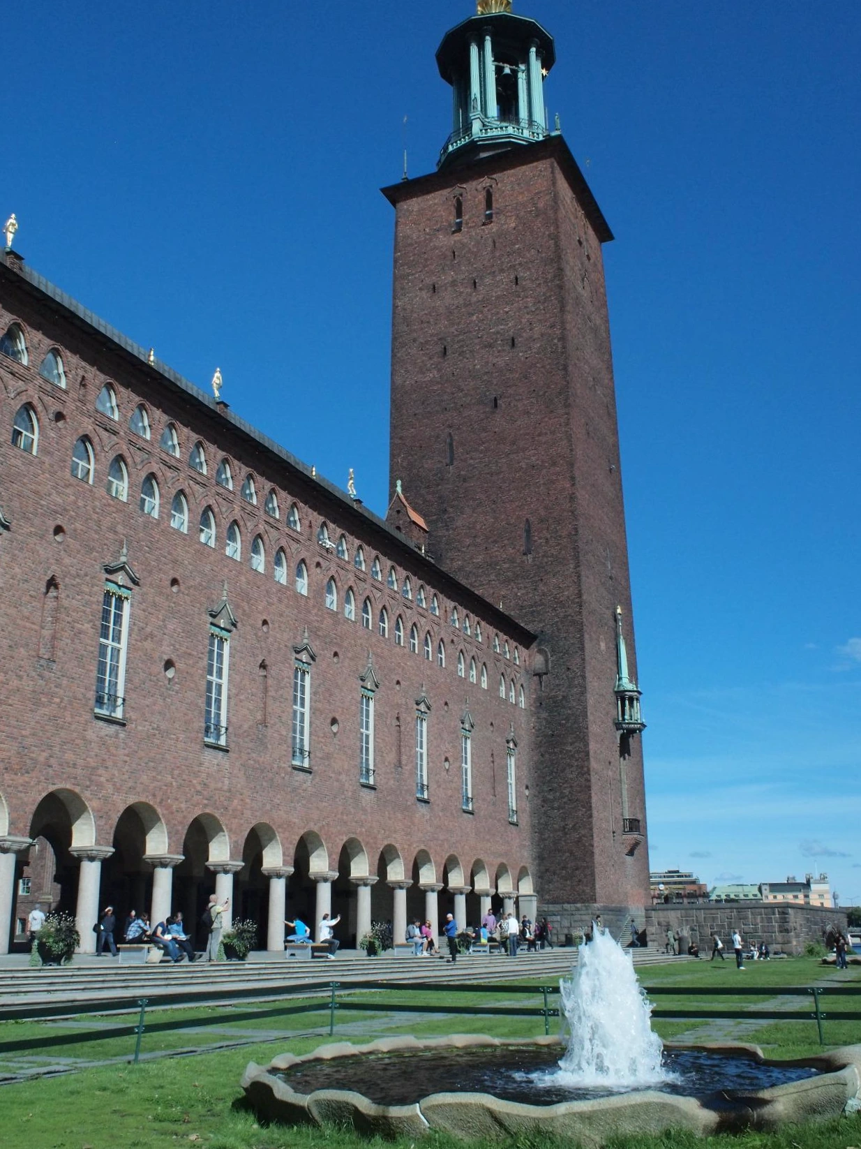 호숫가를 따라 걷다 보니 어느새 시청사 앞이다. 시청 앞 정원은 여기저기 관광객으로 보이는 사람들이 모여 스톡홀름 치고는 모처럼 분주하다. 오래간만에 다양한 피부색의 사람들이 섞여서 복작거리는 풍경이다. 아이들은 잔디밭을 운동장 삼아 뛰어놀고, 커플들은 물가 경치를 배경으로 몇 번이고 기념사진을 다시 찍느라 집중한다.