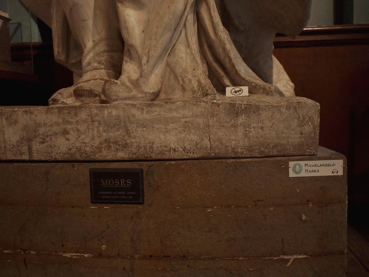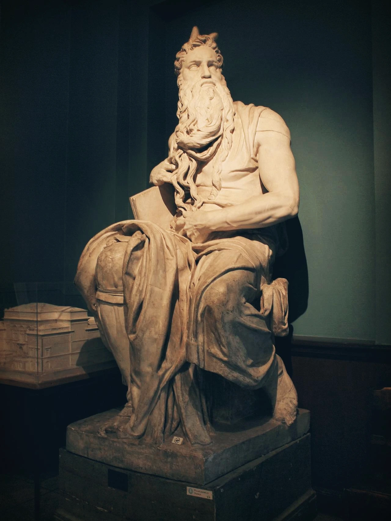 회화는 본 적이 많았지만 제대로 된 조각은 처음 보는 순간이었다. '모세(Moses)'라는 제목의 조각상 앞에 '미켈란젤로(Michelangelo)'라고 메모가 붙어 있다.