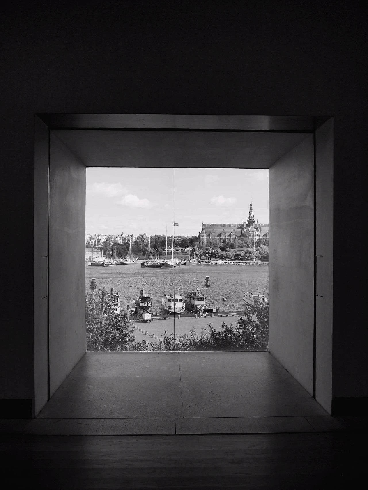 그렇게 감상을 즐기다 자연스레 바라보게 된 커다란 창. 그곳에서는 아니나 다를까 살아있는 그림이 펼쳐지고 있었다. 시청 앞 정원에서, 그랜드 호텔 앞 벤치에서 그리고 포토그라피스카 카페에서도 보았던 바로 그 파노라마. 의도적으로 이렇게 박스형 창을 내어 마치 깊은 액자처럼 만들었음이 분명할 것이다. 누구라도 이 아름다움을 벽으로 막아놓고 싶지는 않으리라.