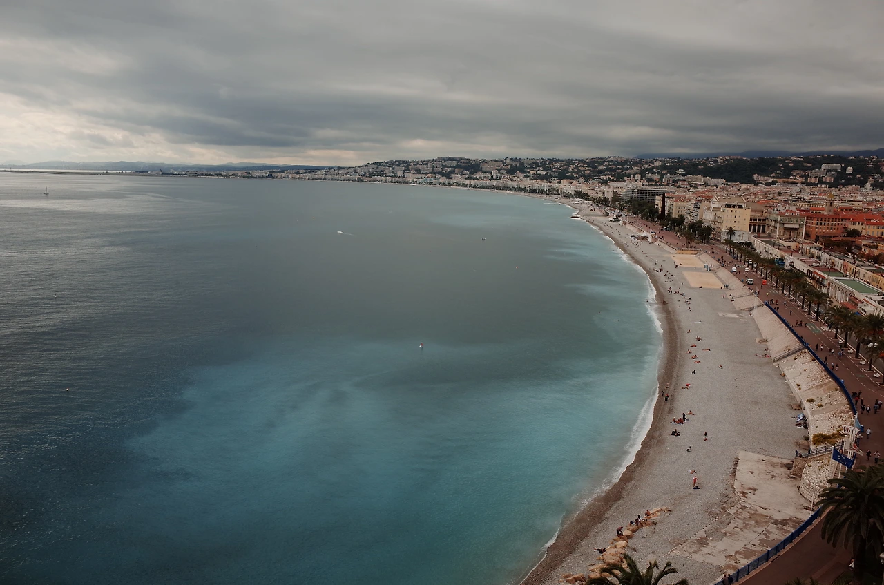 전망대에서 본 니스 해변. 날이 흐려 아쉽지만 그래도 근사했다. 가슴이 탁 트이고 세상 근심이 모두 날아가 버릴 것 같은 시원함에 연신 웃음이 난다.