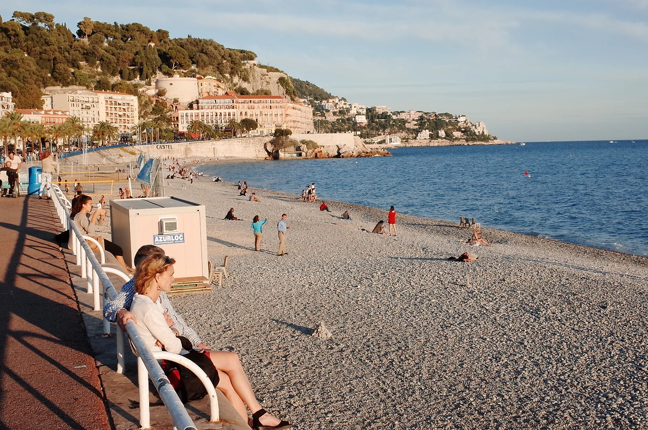 '프롬나드 데 장글레', 영국인의 산책로란 말보다 그 편이 더 프랑스다워서 어울린다. 노을이 지기 시작하는 니스의 해변을 감상하기에 완벽한 프롬나드 데 장글레의 하얀 벤치는 이미 만석이다. 걷다 보니 또 니스 성 앞까지 와버렸다.