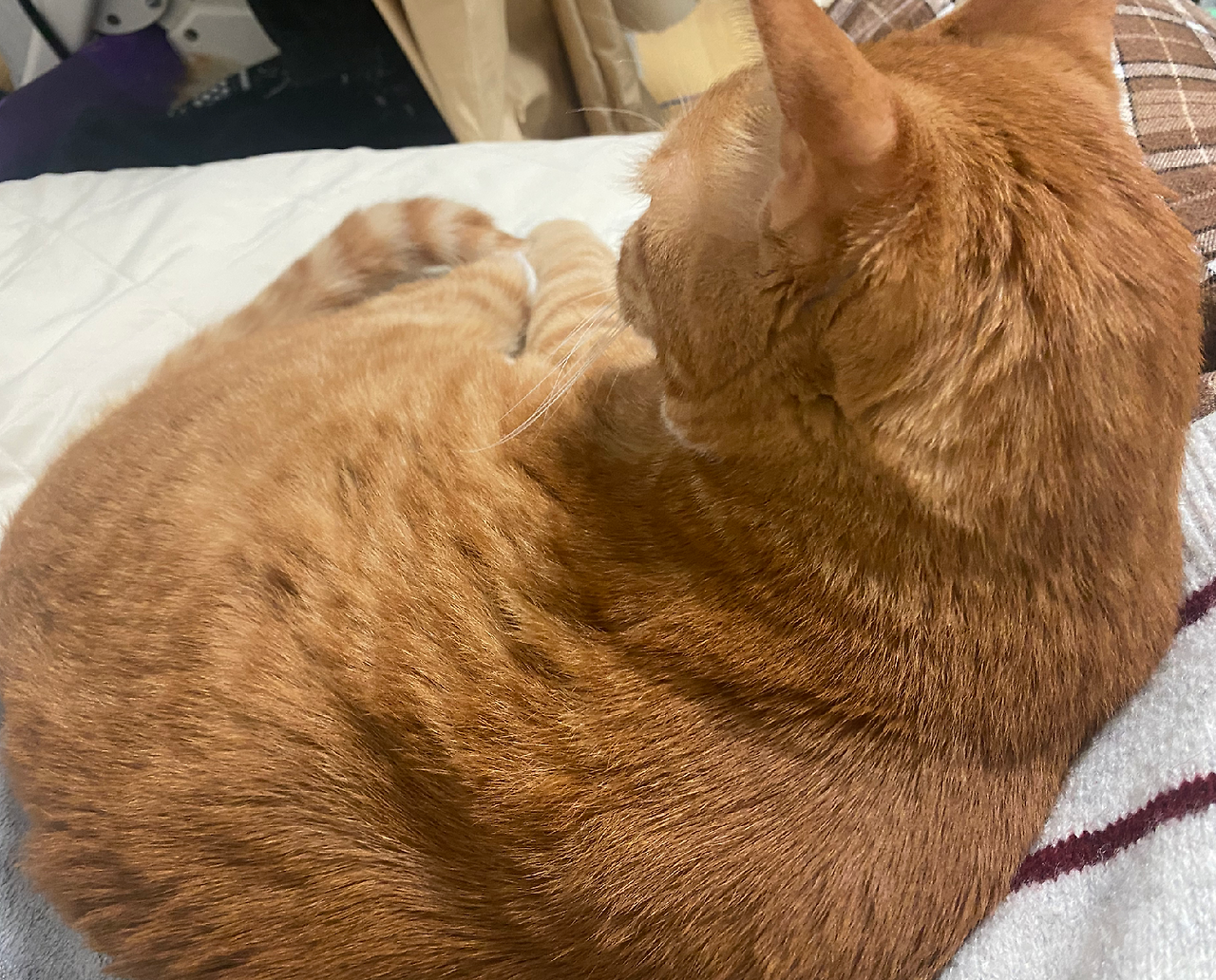 찰싹 붙어있는 고양이.