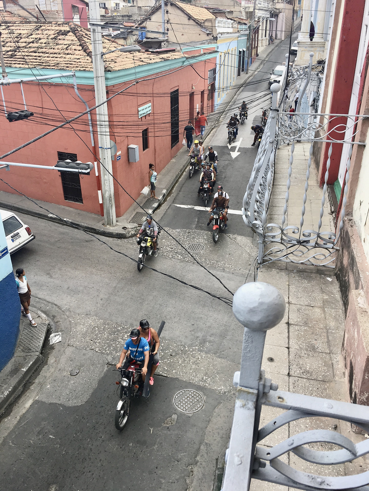 산티아고 데 쿠바는 좁은 언덕길이 대부분이어서인지 유독 오토바이가 많이 다니고, 그나마 지나가는 승용차라도 (쿠바 어디든 그렇듯) 택시 표시가 되어 있지 않아서, 땡볕에 끓어오르는 아스팔트 위로 한 발짝 나가서 눈치껏 손을 흔들어 봐야 하는 것이다.