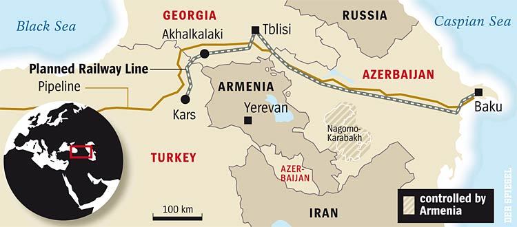 그리고 여전히 아르메니아를 빙 둘러 피해 가면서, (아르메니아의 원수이자 아제르바이잔의 형제나 다름없는) 터키와 더욱 강하게 이어진다는 것, 그리하여 아르메니아는 정치적으로도 경제적으로도 더욱 고립되어 나갈 것이라는 것.
