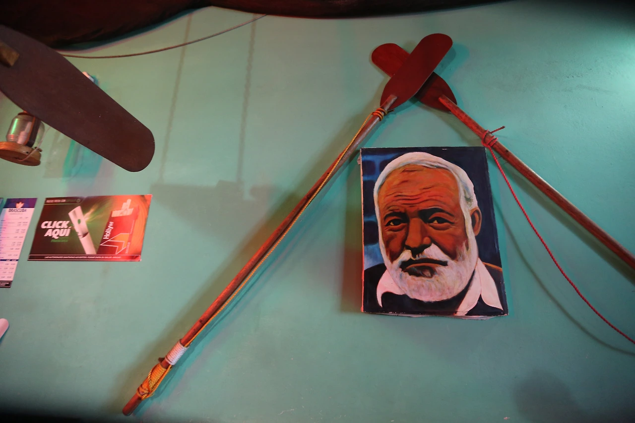 손님 하나 없는 가게의 바닥에서 들이친 빗물을 대걸레로 훔쳐내고 있던 바텐더가 무심히 손가락 하나를 뻗어 어두운 벽 한 곳을 가리킨다. 그곳에 엉성한 헤밍웨이의 초상화 하나가 걸려있다.